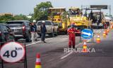 H-9 jelang Hari Raya Idul Fitri 1444 H, sejumlah tiitk di Jalan Tol Trans Sumatera ruas Kayu Agung-Palembang (Kapal) masih dilakukan perbaikan.