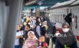 REPUBLIKA.CO.ID,PALEMBANG -- Pemudik kereta api menunggu jadwal keberangkatan di ruang tunggu Stasiun Kertapati, Palembang, Sumatera Selatan, Sabtu (15/4/2023).