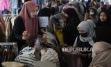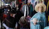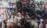 Warga berbelanja pakaian di Pasar Tanah Abang, Jakarta, Sabtu (15/4/2023). H-7 menjelang Hari Raya Idul Fitri 1444 Hijriah, Pasar Tanah Abang mulai ramai dikunjungi warga yang berbelanja pakaian baru untuk Lebaran. (FOTO : Republika/Putra M. Akbar)