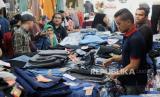 REPUBLIKA.CO.ID,JAKARTA -- Warga berbelanja pakaian di Pasar Tanah Abang, Jakarta, Sabtu (15/4/2023).