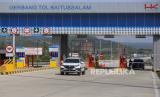 REPUBLIKA.CO.ID,ACEH BESAR -- Kendaraan melintas di Jalan Tol Trans Sumatera (JTTS) ruas Sigli-Banda Aceh (Sibanceh) seksi 6 Kuta Baro-Baitussalam, Aceh Besar, Aceh, Sabtu (15/4/2023).