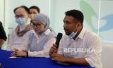 Paman David Ozora Latumahina, Rustam memberikan keterangan terkait kepulangan David dari Rumah Sakit Mayapada, Kuningan, Jakarta, Ahad (16/4/2023). David Ozora Latumahina akhirnya diizinkan pulang dari rumah sakit lantaran terus menunjukan perkembangan yang baik setelah hampir dua bulan dirawat. Meski dirawat di rumah, ia akan tetap mendapat perawatan layaknya di rumah sakit. (FOTO : Republika/Prayogi)