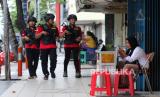 REPUBLIKA.CO.ID, SURABAYA -- Sejumlah personel Tim Anti Bandit Unit Resmob Satreskrim Polrestabes Surabaya melakukan patroli di sentra penjualan perhiasan emas di Jalan Blauran, Surabaya, Jawa Timur, Minggu (16/4/2023).