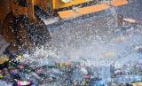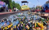 REPUBLIKA.CO.ID,KUDUS -- Petugas dengan alat berat menghancurkan botol minuman keras di Alun-alun Kudus, Jawa Tengah, Senin (17/4/2023).