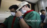 REPUBLIKA.CO.ID,JAKARTA -- Tersangka yang juga aktor Hud Filbert berjalan saat rilis kasus penyalahgunaan narkoba di Polres Metro Jakarta Barat, Senin (17/4/2023).