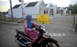 Tanda penutupan bangunan milik Satpol PP DIY terpasang di bagian depan proyek perumahan Djunas Village, Maguwoharjo, Sleman, Yogyakarta, Senin (17/4/2023). (FOTO : Republika/Wihdan Hidayat)