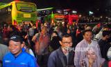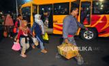 REPUBLIKA.CO.ID, KUDUD -- Sejumlah peserta Program Mudik Gratis Jateng berdiri saat tiba di Pendopo Kudus, Jawa Tengah, Senin (17/4/2023).