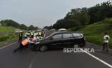 REPUBLIKA.CO.ID,PALIMANAN -- Dua kendaraan mengalami kecelakaan lalu lintas di ruas tol Cipali Km 74 arah Palimanan, Jawa Barat, Selasa (18/4/2023).