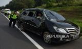 Kendaraan yang mengangkut pemudik mengalami kecelakaan lalu lintas di ruas tol Cipali Km 74 arah Palimanan, Jawa Barat, Selasa (18/4/2023). Satu kendaraan minibus yang mengangkut lima orang pemudik tujuan Ngawi, Jawa Timur itu terlibat kecelakaan dengan mobil truk pengangkut barang. Kecelakaan diduga akibat supir truk mengantuk sehingga lepas kendali dan menabrak mobil minibus. Tidak ada korban jiwa dalam kecelakaan tersebut, namun akibat kecelakaan itu sempat terjadi kemacetan hingga 2 kilometer. (FOTO : Republika/Edwin Dwi Putranto)