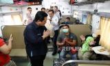 Menteri BUMN Erick Thohir meninjau langsung kondisi arus mudik di Stasiun Pasar Senen.