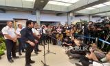 Menteri BUMN Erick Thohir menyapa pemudik saat meninjau langsung kesiapan layanan PT KAI dalam menghadapi arus mudik lebaran 1444 Hijriah di Stasiun Pasar Senen, Jakarta, Selasa (18/4/2023). (FOTO : Dok. Republika)