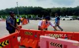 Berbagai persiapan telah dilakukan petugas di Gerbang Tol (GT) Kalikangkung, Kota Semarang, Jawa Tengah guna mengantisipasi puncak pergerakan kendaraan pemudik asal Jakarta dan daerah lain di sekitarnya, Selasa (18/4). (FOTO : Republika/Bowo Pribadi)