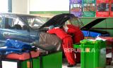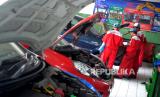 REPUBLIKA.CO.ID, YOGYAKARTA -- Siswa melakukan perawatan kendaraan di bengkel Unit Produksi Jasa dan Teaching Factory SMKN 2 Yogyakarta, Selasa (17/4/2023).