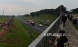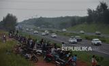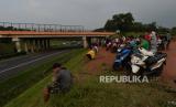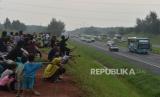 Warga menunggu waktu berbuka puasa atau ngabuburit di pinggir Tol Cipali Km 78 Arah Palimanan, Jawa Barat, Selasa (18/4/2023). (FOTO : Republika/Edwin Dwi Putranto)