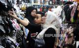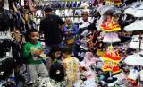 REPUBLIKA.CO.ID, DUMAI -- Sejumlah pengunjung memilih sendal dan sepatu yang akan dibeli untuk Lebaran di Pasar Senggol Kota Dumai, Riau, Selasa (18/4/2023).