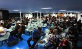 REPUBLIKA.CO.ID, GILIMANUK -- Pemudik berada di ruang istirahat kapal pada pelayaran dari Gilimanuk ke Pelabuhan Ketapang di Selat Bali, Selasa (18/4/2023).