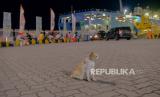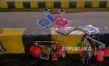 Barang dagangan milik pedagang tersimpan disamping pembatas jalan di Pelabuhan Merak, Cilegon, Banten, Selasa (18/4/2023). (FOTO : Republika/Thoudy Badai)