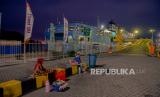 Pedagang menunggu antrean kendaraan pemudik di Pelabuhan Merak, Cilegon, Banten, Selasa (18/4/2023). (FOTO : Republika/Thoudy Badai)