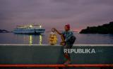 Kapal yang mengangkut pemudik bersiap berlayar menuju Pelabuhan Bakauheni dari Pelabuhan Eksekutif Merak, Cilegon, Banten, Selasa (18/4/2023). (FOTO : Republika/Thoudy Badai)