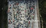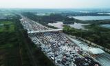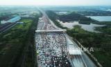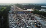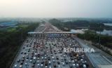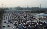 Ribuan kendaraan antre di Gerbang Tol (GT) Cikampek Utama, Karawang, Jawa Barat, Rabu (19/4/2023) pagi. Kepadatan kendaraan terjadi di GT Cikampek Utama beberapa hari jelang Hari Raya Idul Fitri 1444 H. Kebijakan manajemen lalu lintas satu arah hingga GT Kalikangkung juga masih diberlakukan hingga Rabu (19/4/2023) pagi ini. (FOTO : Republika/Edwin Dwi Putranto)