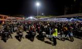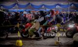 Pemudik motor antre sebelum menaiki kapal di Pelabuhan Ciwandan, Cilegon, Banten, Rabu (19/4/2023) dini hari. Peningkatan jumlah pemudik motor pada Rabu (19/4) dini hari terjadi di Pelabuhan Ciwandan. Sejunlah pemudik mulai memadati area pelabuhan sekitar pukul 00.00 WIB. Sementara berdasarkan data dari Pelindo, sebanyak 12.657 unit sepeda motor yang menyeberang dari Pelabuhan Ciwandan menuju Sumatera sejak sabtu (15/4) hingga Selasa (18/4) sore. Puncak arus mudik di Pelabuhan Ciwandan diprediksi terjadi pada hari ini Rabu (19/4). (FOTO : Republika/Thoudy Badai)