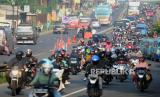 REPUBLIKA.CO.ID,KARAWANG -- Sejumlah pemudik melintasi kawasan Simpang Jomin, Karawang, Jawa Barat, Rabu (19/4/2023). Lalu lintas di kawasan Simpang Jomin terpantau ramai lancar dari pemudik yang akan menuju arah Jawa Tengah.