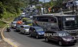 REPUBLIKA.CO.ID,BANDUNG -- Sejumlah kendaraan terjebak kemacetan di ruas Jalan Nasional III, Nagreg, Kabupaten Bandung, Jawa Barat, Rabu (19/4/2023).