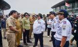 REPUBLIKA.CO.ID, JAKARTA -- Menteri Lingkungan Hidup dan Kehutanan (LHK) Siti Nurbaya saat melakukan peninjauan arus mudik di Terminal Pulo Gebang Jakarta Timur, Selasa, (18/04/2023).