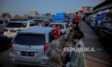 Pemudik menunggu antrean untuk menaiki kapal di Dermaga 5 Pelabuhan Merak, Cilegon, Banten, Rabu (19/4/2023). (FOTO : Republika/Thoudy Badai)