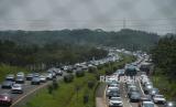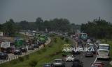 Kendaraan pemudik terjebak kemacetan di ruas Tol Cipali Km 80 arah Palimanan, Jawa Barat, Rabu (19/4/2023). (FOTO : Republika/Edwin Dwi Putranto)