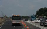 Petugas berlakukan sistem buka tutup rest area sementara di ruas Tol Cipali Km 81 arah Palimanan, Jawa Barat, Rabu (19/4/2023) (FOTO : Republika/Edwin Dwi Putranto)