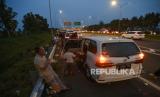 REPUBLIKA.CO.ID, MAJALENGKA -- Sejumlah pemudik menyantap makanan saat berbuka puasa di badan jalan Tol Cikopo-Palimanan (Cipali), Majalengka, Jawa Barat, Rabu (19/4/2023).