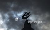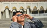 REPUBLIKA.CO.ID,PADANG -- Gerhana matahari hibrida terlihat dari halaman Masjid Raya Sumatera Barat, di Padang, Kamis (20/4/2023).
