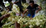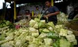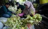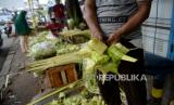 REPUBLIKA.CO.ID,JAKARTA -- Pedagang kulit ketupat melayani pembeli di kawasan Palmerah, Jakarta, Kamis (20/4/2023).