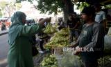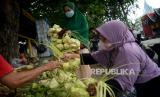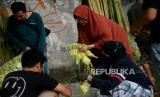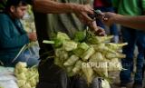 Warga membeli kulit ketupat di kawasan Palmerah, Jakarta, Kamis (20/4/2023). Penjualan kulit ketupat mengalami peningkatan seiring semakin dekatnya Hari Raya Idul Fitri 1444 H dan setiap ikat yang terdiri dari 10 buah kulit ketupat dijual 10 ribu rupiah per ikatnya. (FOTO : Republika/Prayogi)