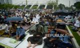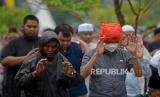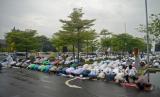 Meski hujan rintik-rintik, jemaah tetap antusias melaksanakan ibadah.