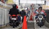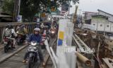 REPUBLIKA.CO.ID, BOGOR -- Sejumlah pemudik motor melintasi jembatan darurat di jalan raya utama Bogor-Sukabumi, Cikreteg, Kabupaten Bogor, Jawa Barat, Jumat (21/4/2023).