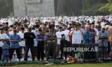 REPUBLIKA.CO.ID, CIBINONG -- Sejumlah umat Islam melaksanakan sholat Idul Fitri di Lapangan Tegar Beriman, Cibinong, Kabupaten Bogor, Jawa Barat, Sabtu (22/4/2023).