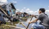 Tidak hanya rumah, puluhan alat transportasi air milik warga di permukiman padat penduduk ikut rusak, (FOTO : ANTARA FOTO/BAYU PRATAMA S)