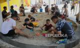 Wisatawan bermain pasir pada wahana Jungle Beach di The Jungle Waterpark, Kota Bogor, Jawa Barat, Ahad (23/4/2023). Hari libur Lebaran 1444 Hijriah dimanfaatkan oleh warga untuk mengunjungi objek wisata. Tercatat selama dua hari sekitar 4.500 wisatawan baik dari wilayah Jabodetabek maupun luar kota mengunjungi The Jungle Waterpark yang menyediakan berbagai macam wahana permainan air. (FOTO : Republika/Putra M. Akbar)