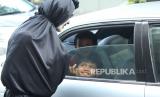 Pocong Hitam menyapa pengendara yang melintas di kawasan Jalan Asia Afrika, Kota Bandung. (FOTO : Edi Yusuf/Republika)