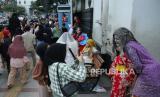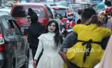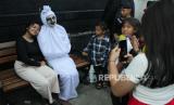 Cosplayer hantu gentayangan di kawasan Jalan Asia Afrika, Kota Bandung, menyapa para pengendara, Ahad (23/4/2023). (FOTO : Edi Yusuf/Republika)