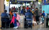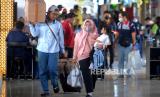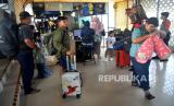Penumpang kereta api jarak jauh mulai berdatangan di Stasiun Lempuyangan, Yogyakarta, Senin (24/4/2023). (FOTO : Republika/Wihdan Hidayat)