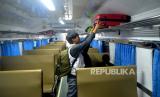 Penumpang memasuki gerbong KA Progo di Stasiun Lempuyangan, Yogyakarta, Senin (24/4/2023). (FOTO : Republika/Wihdan Hidayat)