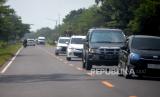 Kendaraan melintas di Jalur Lintas Pantai Selatan (Pansela) Jawa, Purworejo, Jawa Tengah, Senin (24/4/2023). Pada H+2 Lebaran Idul Fitri pantauan kendaraan menuju arah Barat ramai lancar. Beberapa titik tersendat karena pertemuan dengan jalur masuk kawasan wisata. Jalur Pansela menjadi alternatif pemudik untuk kembali ke Jakarta atau Bandung melalui jalur Selatan. (FOTO : Republika/Wihdan Hidayat)