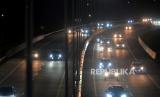 Kendaraan pemudik melintas di Jalan Tol Kalikangkung, Ngaliyan, Semarang, Jawa Tengah, Senin (24/4/2023) malam. Kondisi lalu-lintas arus balik pada H+2 di Jalan Tol Kalikangkung ramai lancar. Dari Gerbang Tol Kalikangkung hingga Cikampek diberlakukan satu arah sejak sore hari untuk mengantisipasi lonjakan kendaraan arus balik. (FOTO : Republika/Wihdan Hidayat)