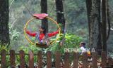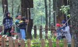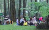 Pengunjung menikmati suasana di kawasan hutan pinus Cikole JalanTangkuban Parahu, Kecamatan Lembang, Kabupaten Bandung, Senin (25/4/2023). (FOTO : Edi Yusuf/Republika)