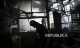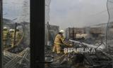 REPUBLIKA.CO.ID, PADEMANGAN -- Sejumlah petugas pemadam kebakaran berusaha memadamkan api yang membakar pemukiman warga di Jalan Muka, Pademangan, Jakarta Utara, Selasa (25/4/2023).