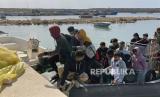 REPUBLIKA.CO.ID, TRIPOLI. -- Migran yang diselamatkan di laut oleh Penjaga Pantai Libya setelah kapal mereka tenggelam di Mediterania, tiba dengan kapal di pelabuhan Garaboli, sebelah timur Tripoli, Libya, (25/4/2023).