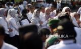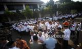 REPUBLIKA.CO.ID, BOGOR. -- Pegawai Negeri Sipil (PNS) antre untuk bersalaman usai mengikuti apel di Kantor Bupati, Kabupaten Bogor, Jawa Barat, Rabu (26/4/2023).